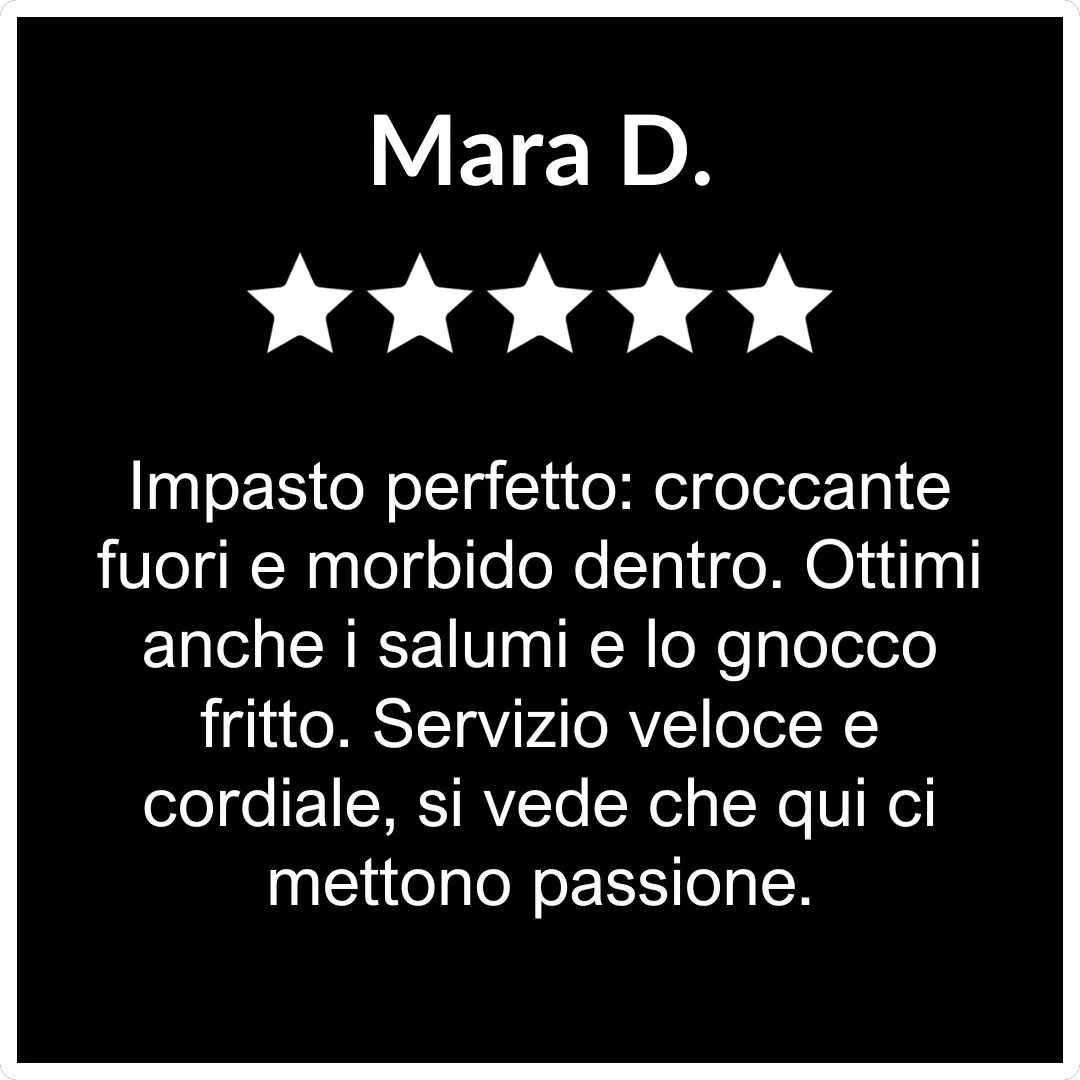 Ingredienti di Qualità: Usiamo solo prodotti italiani, freschi e di stagione: dal pomodoro San Marzano ai salumi DOP emiliani.
